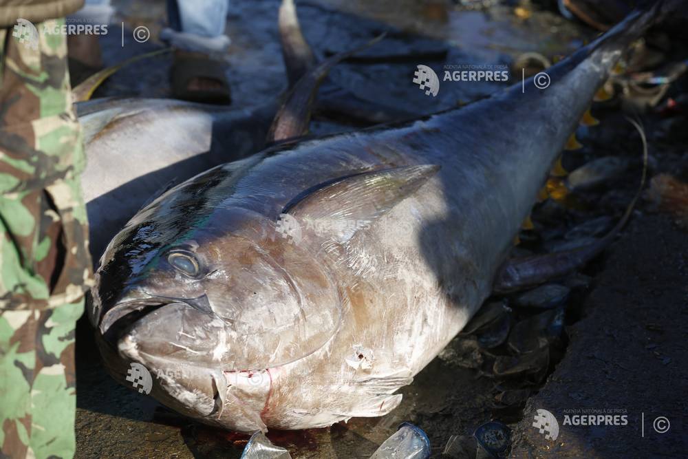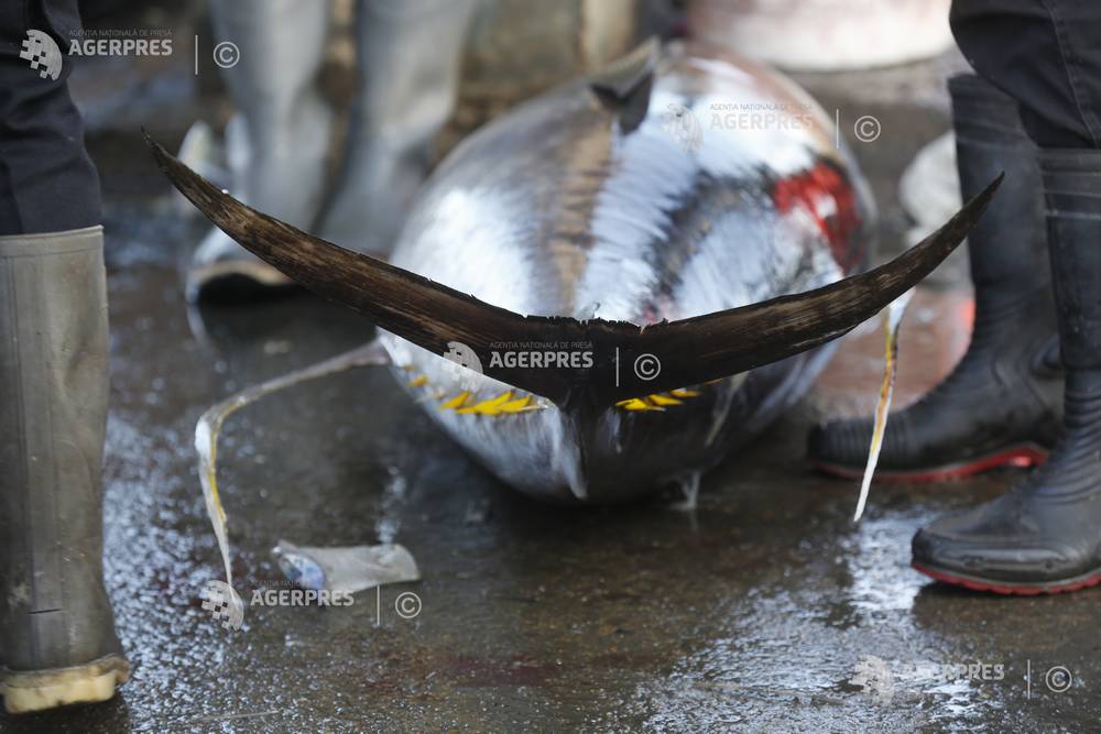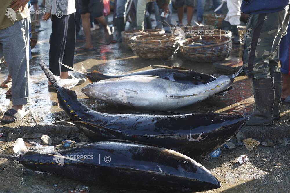 epa12892933 Fishermen display tuna for sale at Lam Pulo fish auction, in Banda Aceh, Indonesia, 1...