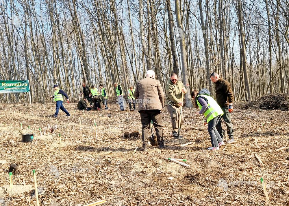 Actiune de impadurire la Ocolul Silvic Bucsani din Dambovita, desfasurata la debutul Lunii plantarii arborilor.
