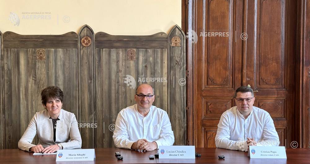 In imagine (de la stg. la dr.): Maria Silaghi, director economic al CAO, Lucian Chindlea, directorul Companiei de Apa Oradea (CAO), si Cristian Popa, directorul tehnic CAO, participa la conferinta de presa ocazionata de prezentarea raportului anual al CAO pe anul 2025.