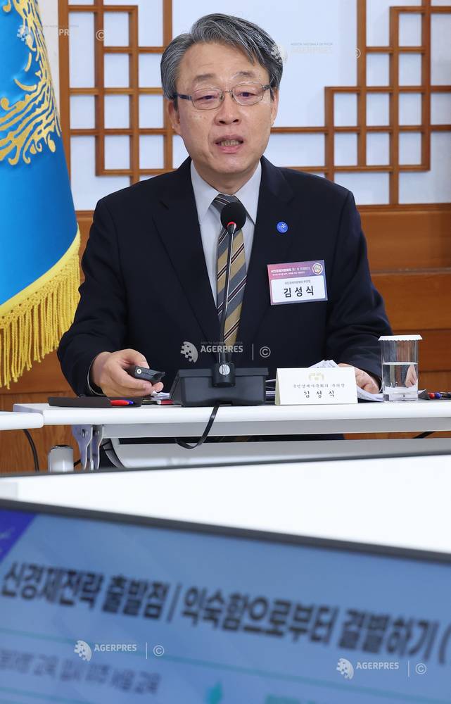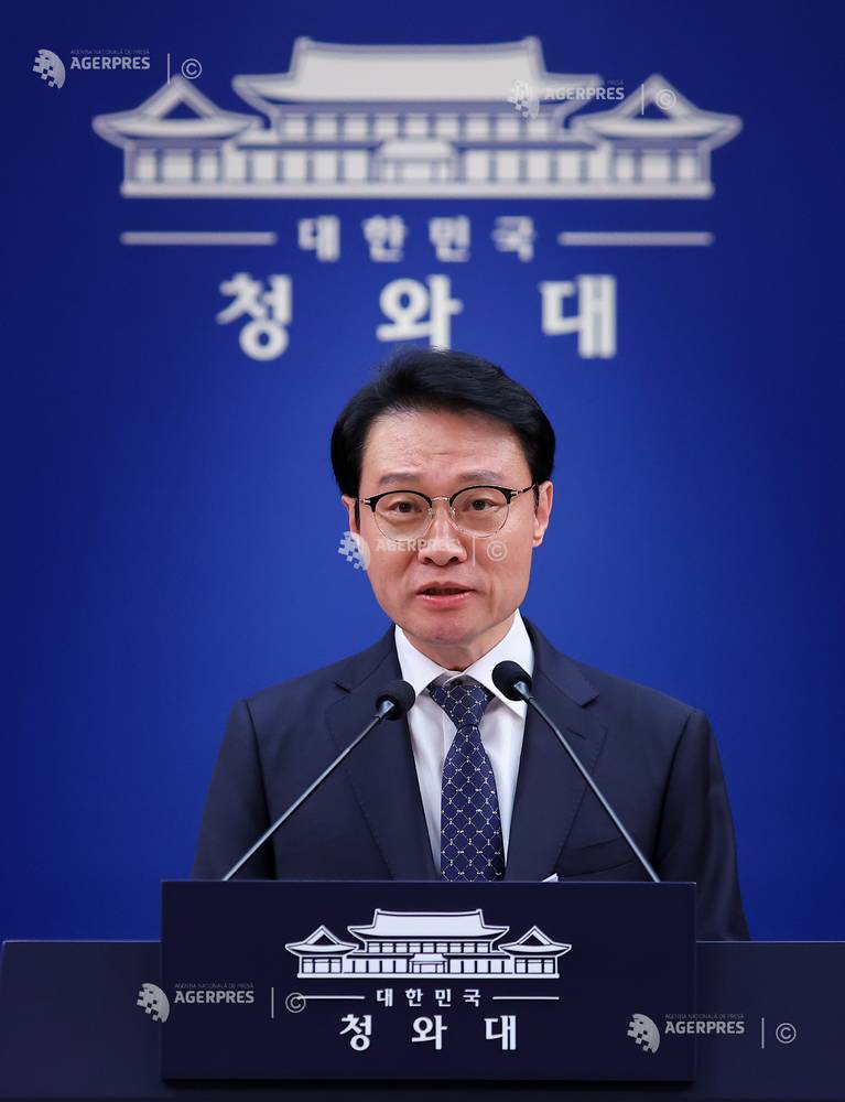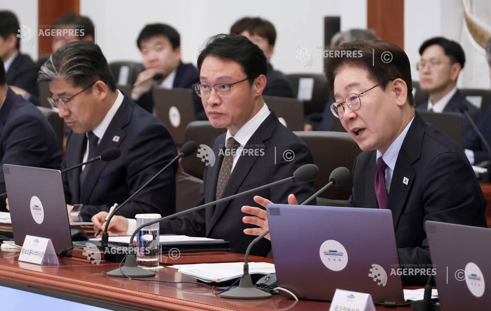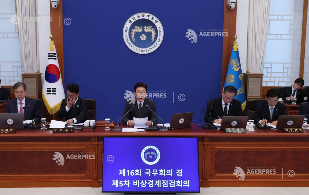 epa12892828 South Korea's President Lee Jae Myung (C) holds a meeting with his senior secretaries at the presidential office Cheong Wa Dae, Seoul, South Korea, 16 April 2026. EPA/YONHAP / POOL SOUTH KOREA OUT